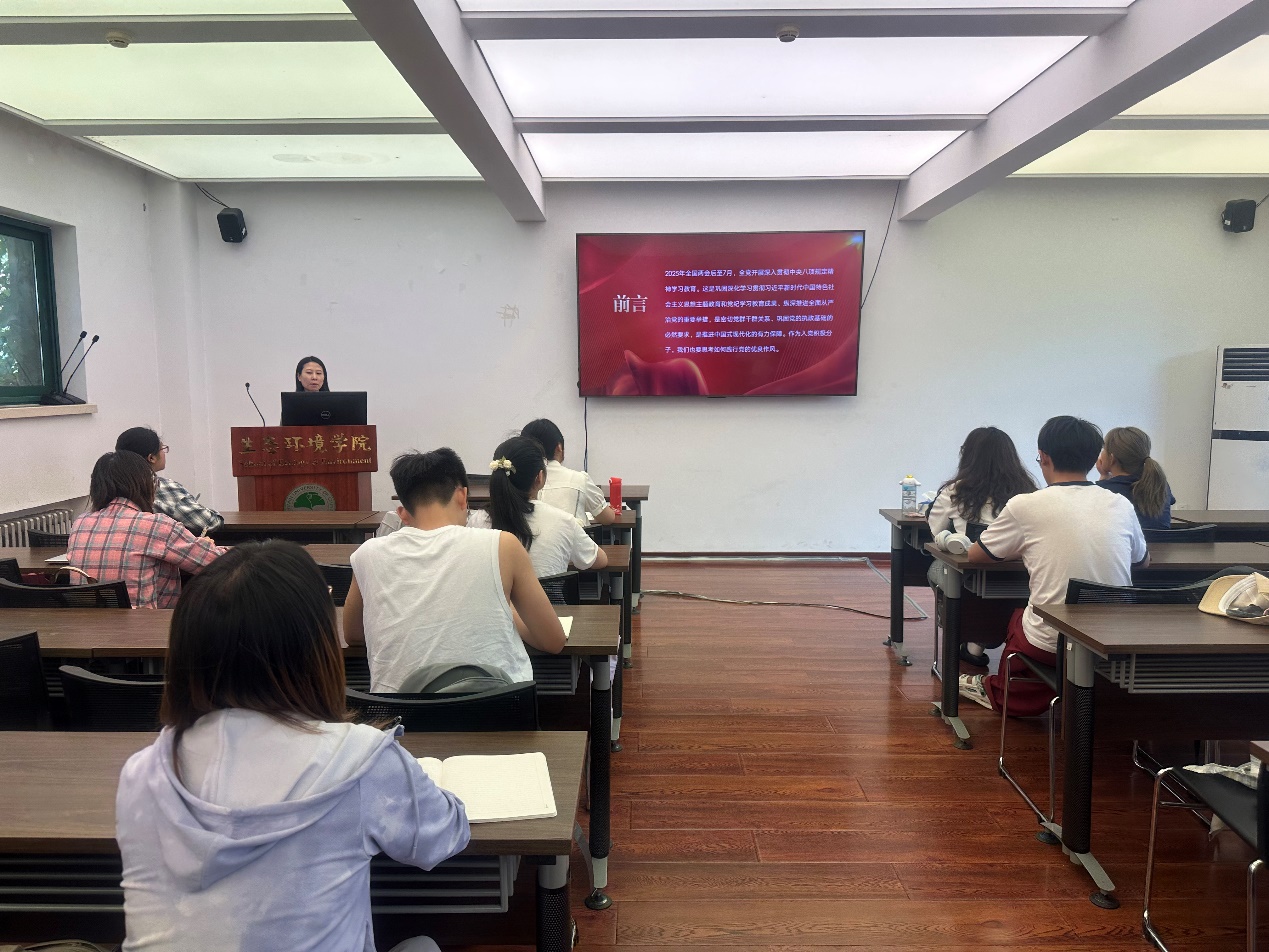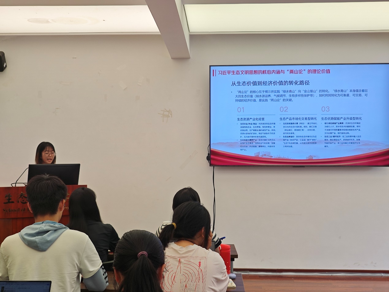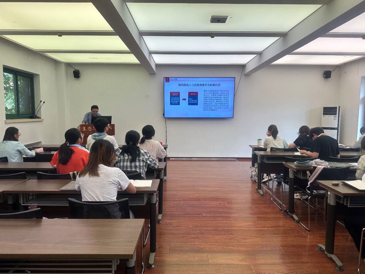 5月21日下午,副院长王克聚焦于习近平总书记在全国生态环境保护大会上的讲话精神,细致阐释了我国生态环境保护的战略布局和重要任务,深入分析了当前生态环境面临的挑战与机遇。学员们由此充分认识到生态环境保护工作的紧迫性和重要性,进一步增强了投身生态环保事业的使命感。随后,学员们结合党的二十大精神和习近平生态文明思想,围绕 “当代人大环境青年学子如何加强习近平生态文明思想的研究阐释,在传承红色基因、赓续红色血脉中踔厉奋发、勇毅前进” 这一主题展开了小组展示与讨论。