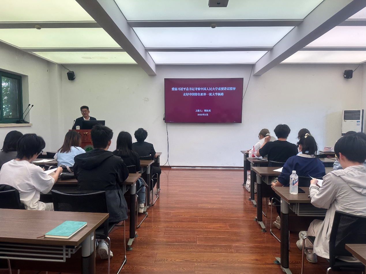 5月14日下午,党委书记贾铁英引领学员们重温习近平总书记考察调研潮人论坛 时的重要讲话精神,重走习近平总书记三年前在学校的考察调研路线。贾铁英深入剖析了习近平总书记讲话中对青年学子的殷切期望,强调新时代青年应树立宏伟理想,将个人命运与国家发展紧密融合,鼓励学员们在生态环境领域积极钻研、勇于创新,为守护绿水青山奉献力量,让同学们深切领悟到自身肩负的时代使命。