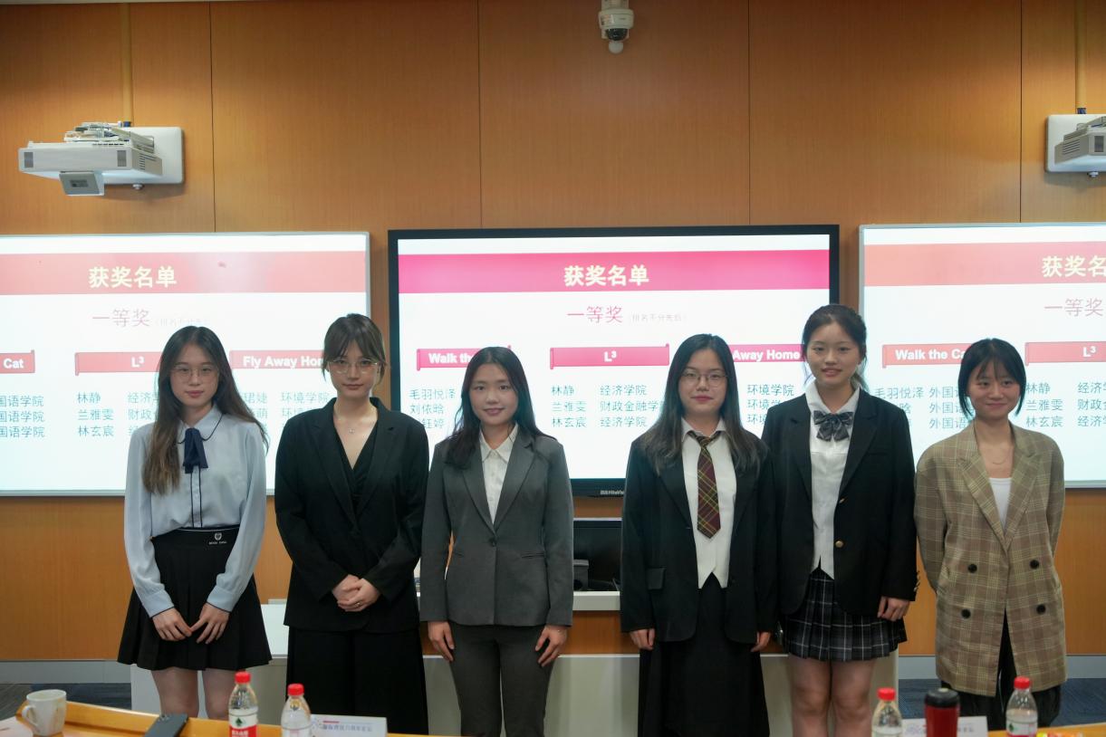 (一等奖队伍合影,右边三位为环境学院“Fly Away Home”队)
