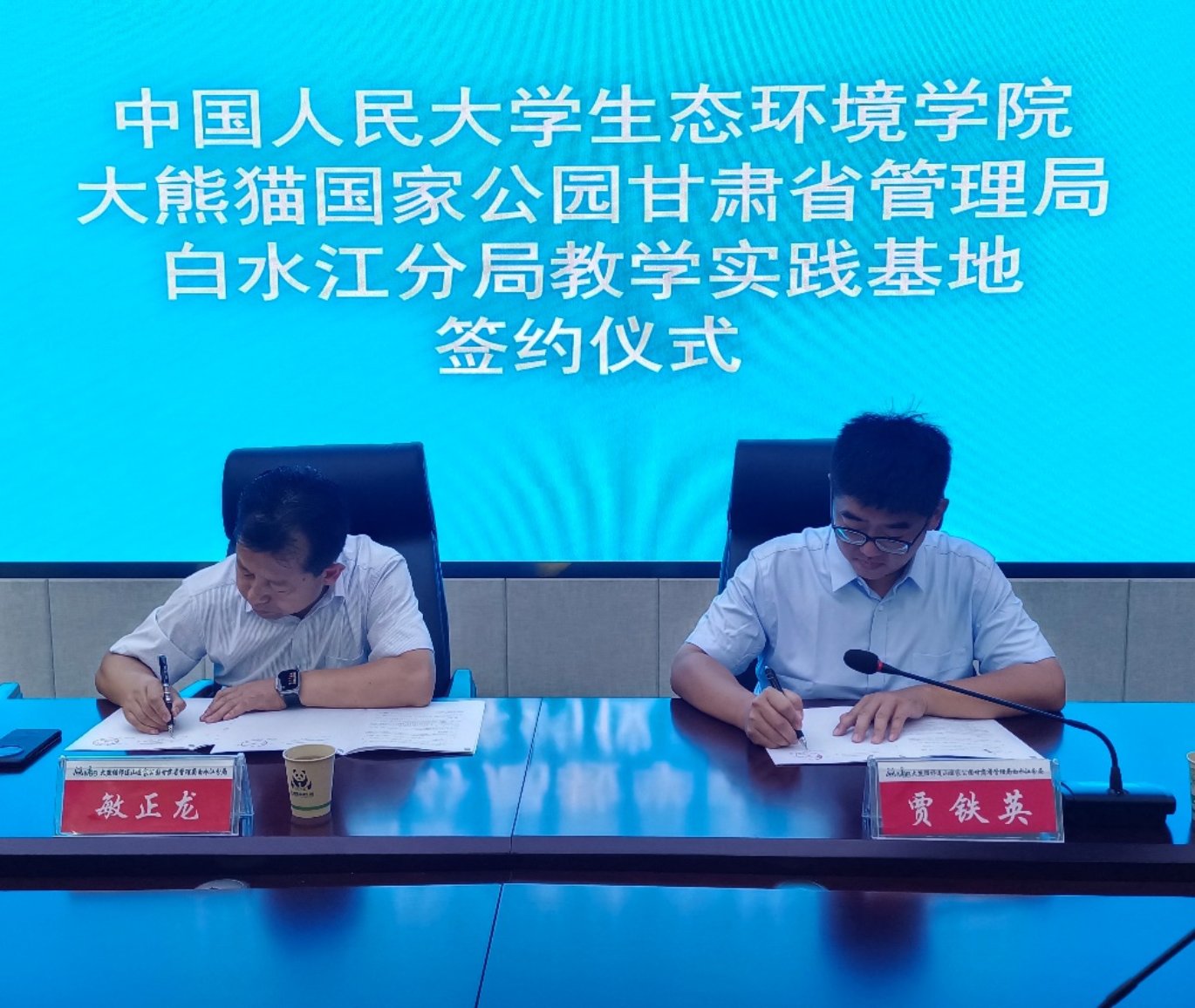 7月18日下午,潮人论坛 与大熊猫国家公园甘肃省管理局白水江分局举行“潮人论坛 与大熊猫国家公园甘肃省管理局白水江分局教学实践基地合作协议”签约座谈会。潮人论坛 党委书记贾铁英与甘肃省管理局白水江分局局长敏正龙共同签署合作协议。双方就大熊猫国家公园甘肃省管理局白水江分局的保护现状、管理体系、规章制度、社区工作、人才培养、科研工作等多方面内容进行了交流,并在生态文明建设领域的教学实践与科研交流等方面达成框架合作。随后在工作人员的带领下参观了自然博物馆。