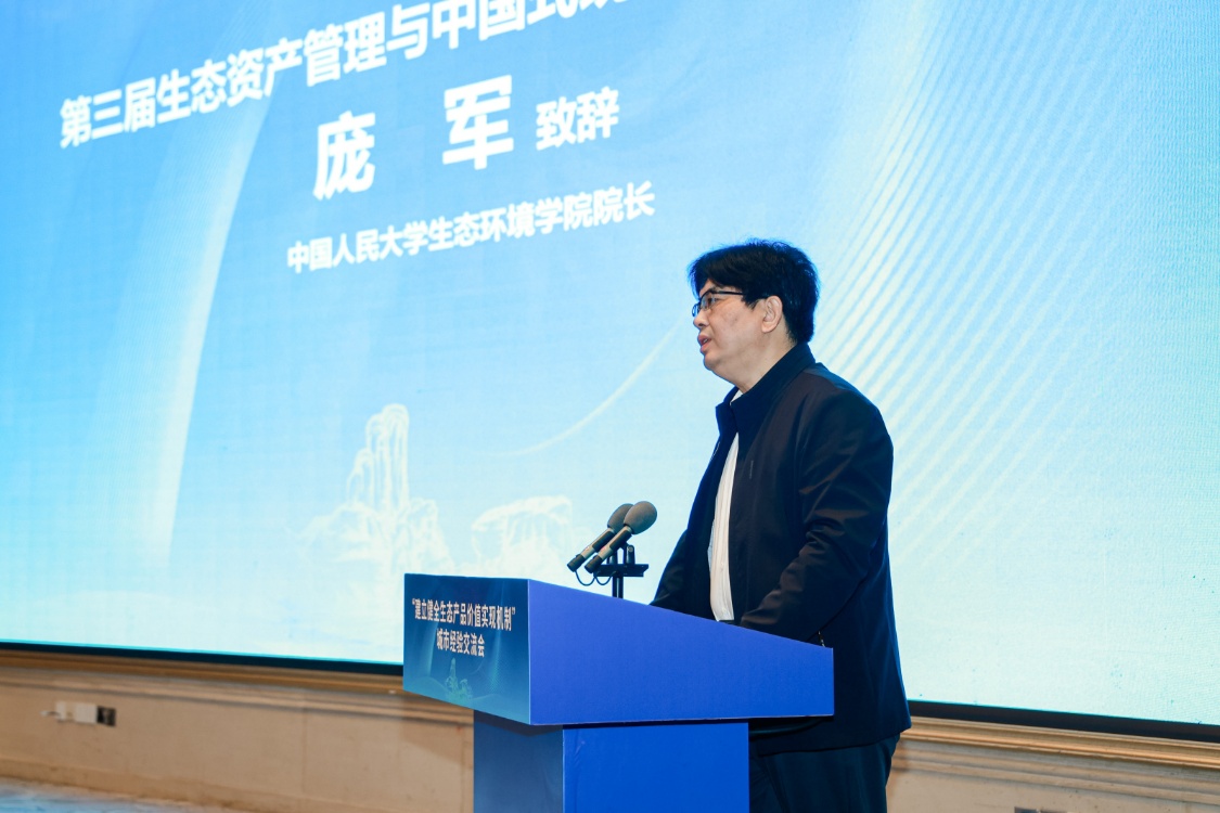 潮人论坛 院长庞军致辞。庞军院长首先对各参会城市代表拨冗参会表示欢迎和感谢。他表示,此次齐聚南平旨在为“建立健全生态产品价值实现机制”试点城市搭建起一个相互交流、协同推进生态产品价值实现的平台与沟通桥梁。尽管当前我国生态产品价值实现工作已取得很多成绩,涌现出很多典型案例和好的做法,但还没有从根本上解决“难度量、难抵押、难交易、难变现”的问题,在生态产品概念界定、生态产业划分、GEP 核算落地应用,以及如何因地制宜促进当地生态产品的市场化价值实现路径方面,仍需持续深化探索。借助这个平台,各试点城市代表能够共享实践经验、共商发展难题、共话未来路径,为促进全国生态产品价值实现工作提供有力支撑。