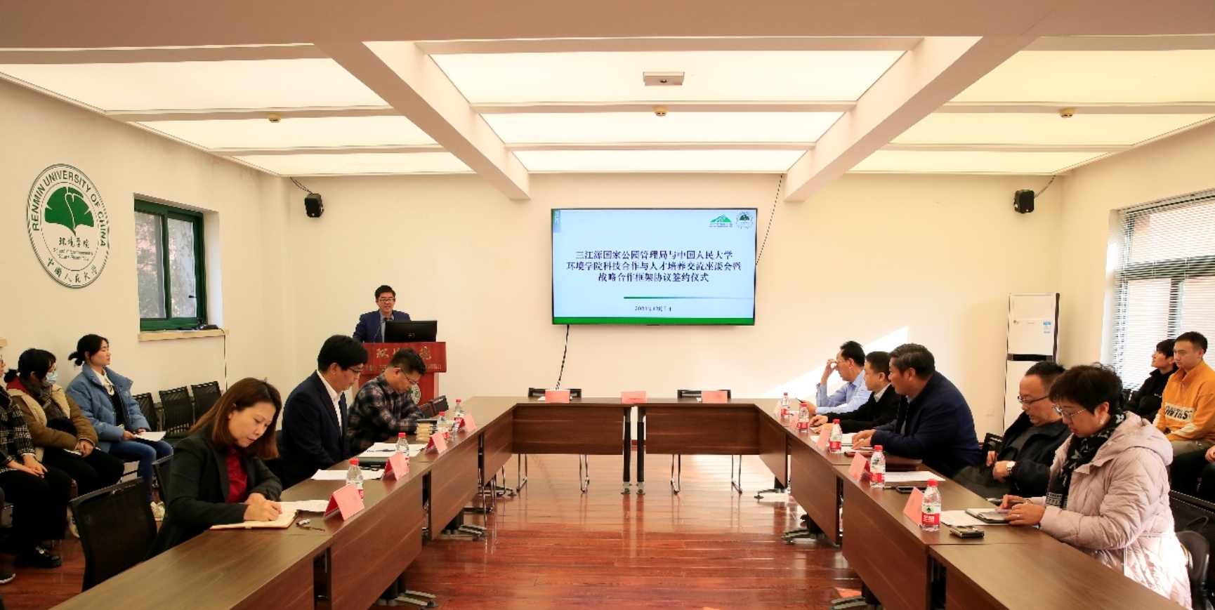 2023年12月5日,三江源国家公园管理局副局长晁世海一行到访环境学院调研座谈并签署战略合作框架协议。学院党委书记贾铁英主持会议,学院党政领导班子、师生代表等参加座谈及签约仪式。