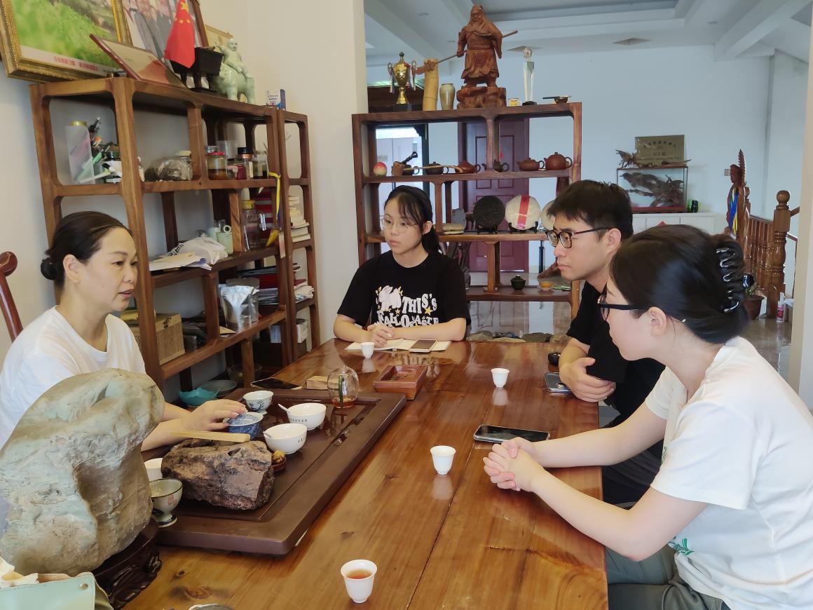 7月26日上午,师生调研团赴曹墩村实地考察武夷山国家公园的建设对当地茶产业的发展情况。曹墩村是武夷山地区茶产业的重要组成部分,该村村民多以岩茶种植营生,依托“农户自营,合作共营,政府助营”的“三营”方针进行茶产品销售,是研究武夷山地区茶产业与国家公园保护问题的典型地区。为深度了解茶农的真实想法与诉求,调研团采用“小组—茶农”的一对一访谈式策略、走访4家当地的茶叶种植大户,在茶香闽语中了解当地茶叶产业发展的近况。得益于武夷山国家公园的发展与游客的奔走相告,曹墩村的茶产业发展态势良好,销路广,受众足。同时,武夷山国家公园的建设也使武夷山的生态环境与资源禀赋进一步优化,尤其是水资源与土地资源的质量进步显著,进而使武夷岩茶的质量得到提升,曹墩村茶产业的声誉与销量也得到提高。虽然国家公园的建设也伴随着用地约束、农药使用等问题,但茶农们表示了充分的支持,当前的管理政策是为了保障生态环境不因过度开发而受损,归根结底有利于茶产业的永续发展。