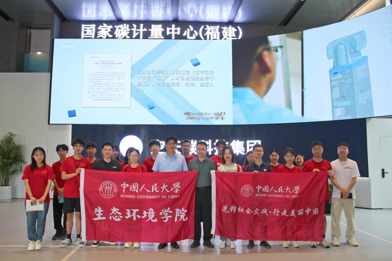 在南平市人民政府副秘书长、国家碳计量中心(福建)常务副主任郑明月的带领下,师生调研团参观了国家碳计量中心(福建)。郑明月结合自己多年的学术和工作经历,详尽地介绍了国家碳计量中心的组织构成和合作伙伴、碳汇与碳足迹监测设备与监测技术、碳计量中心的专家团队与进展情况。“我们成功申报并中标‘十四五’国家重点研发计划‘碳排放监测数据质量控制关键测量技术及标准研究’项目。”谈到目前碳计量中心取得的成就,他眼里满是骄傲与希望。