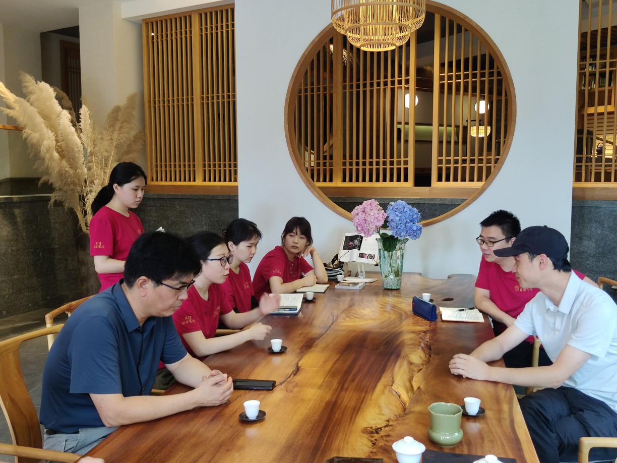 茶农访谈结束后,调研团来到位于黄村的茗川世府生态茶农民合作社开展调研。合作社理事长黄正华表示,合作社在党建引领下以政府引导和金融助力为支撑打造茗川世府品牌,以增进国家公园茶农福祉、推动茶业高质量发展为主要目标,充分利用直营店、加盟店、品牌定制、线上商城、散茶交易、大宗散茶交易平台等市场优势,提高茶企茶农竞争力。通过交流提问,师生们了解到人与自然和谐共生的核心思想在建设合作社中的体现,以及有堵有疏、不能一刀切、不伤农、不伤民的工作思路在发展合作社中的凸显。在转型过程中,合作社具备协商收购模式、自然资源禀赋、专家评定等级等优势,但也在人才引进、茶叶价格、市场销售方面存在瓶颈。师生们意识到,发展好生态茶园,不仅仅是经济、生态的问题,更是文化、制度的问题,是一个必须要多管齐下才能解决的综合性问题。