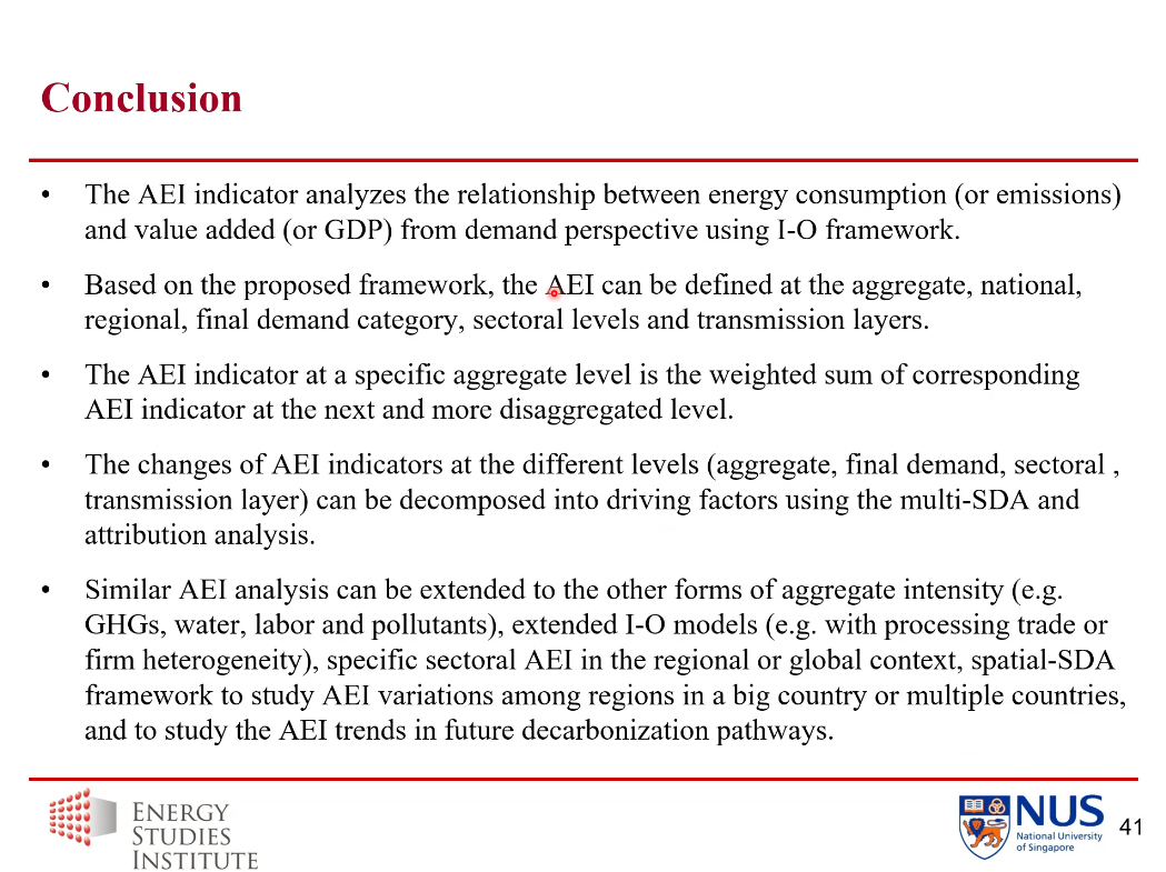 最后,苏斌研究员指出,AEI的分析框架可以扩展到其他形式的总体强度,例如温室气体、劳动力和污染物。空间结构分解分析方法可以用于研究一个大国或者多个国家地区间的AEI变化,并研究未来脱碳路径中的AEI趋势。
