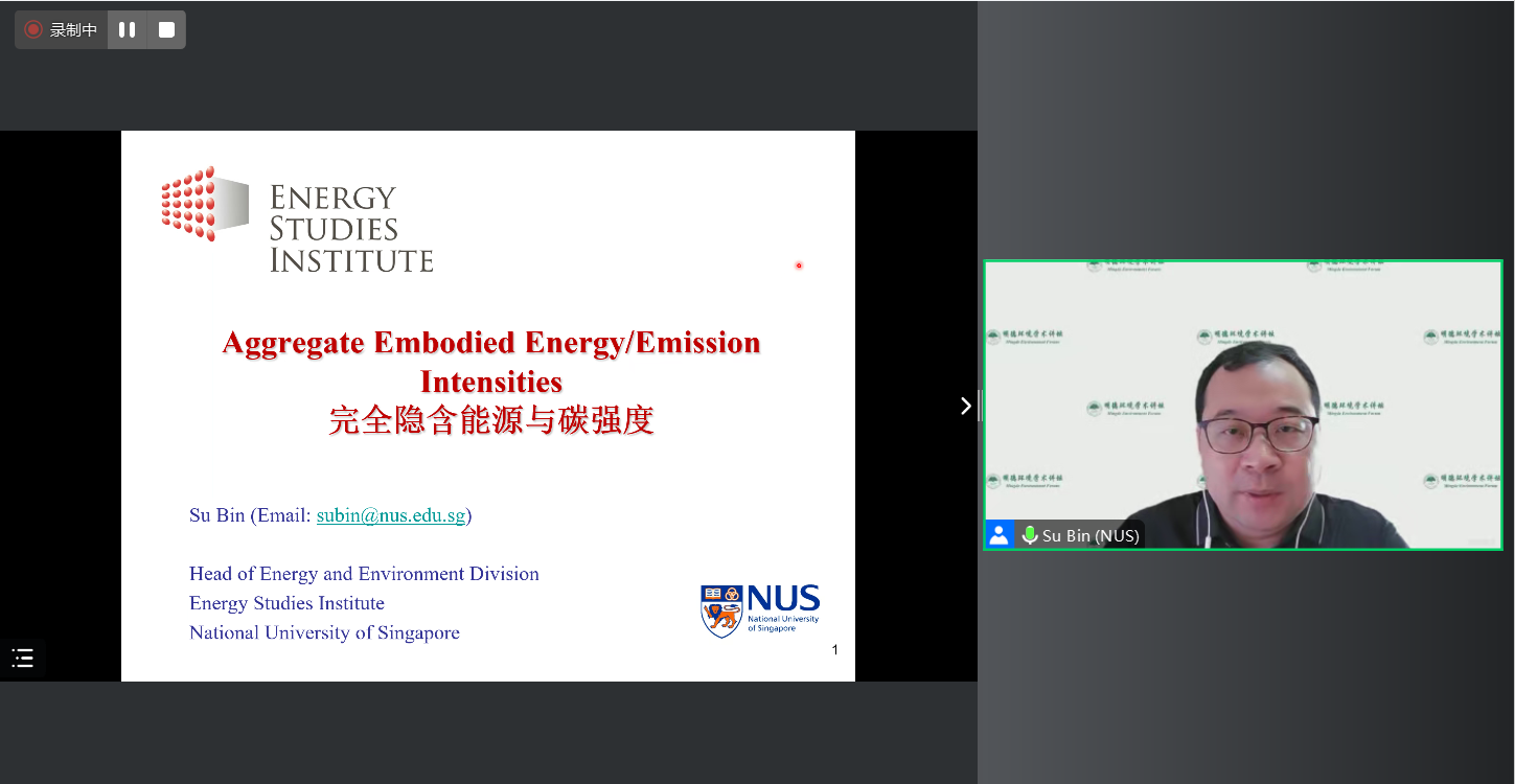 2024年10月30日,潮人论坛 主办的“明德环境学术讲坛”第四十讲以线上线下结合的方式成功举办。本次讲坛邀请新加坡国立大学能源与环境研究中心主任苏斌研究员作了题为“完全隐含能源与碳强度”的学术报告。潮人论坛 院长庞军教授首先致辞,代表学院对苏斌研究员为潮人论坛 师生作学术报告表示诚挚感谢,并对参会师生在交流学习过程中能够有所收获提出了殷切期望。会议由潮人论坛 昌敦虎副教授主持。