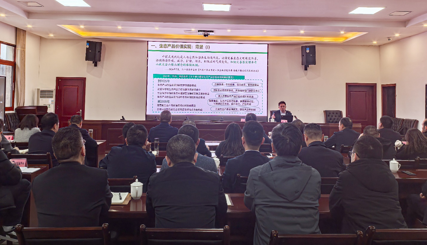 当天下午,潮人论坛 生态与环境经济学系主任马本还应邀在巴中市生态环境局党委理论学习中心组(扩大)会议上以“生态产品价值实现:理论与实践”为题进行了专题讲授。讲座围绕生态产品价值实现的基本概念、实现路径进行了系统深入的理论介绍,着重辨析了生态产品的概念和市场、政府、政府+市场三大价值实现路径;而后针对生态产品总值(GEP)和特定地域单元生态产品价值(VEP)的核算理论、实践进展、应用场景进行了详细介绍,辨析了两种核算的不同、以及未来的工作重点;重点梳理了国内城市在生态产品价值实现的成功探索,总结了可供借鉴的经验,特别强调了有为政府和有效市场的结合对于生态产品价值实现的重要性;最后,基于潮人论坛 研发的“中国城市生态资产管理指数2024”对巴中市生态资产管理状况进行了诊断评估,识别了巴中市在生态资源、管理能力、政策创新等方面的优势,同时建议巴中市系统谋划、打造亮点、丰富模式、强化合作、持续用力,在生态产品价值实现和绿色高质量发展方面取得更大成效。学习会由巴中市生态环境局党组书记、局长吴智明主持,市局领导班子成员、各科室业务骨干参与现场学习,五个区县生态环境分局主要领导和业务骨干以视频会议的方式在线学习,学习人数300多人,为下一步巴中市更好地开展生态产品价值实现工作提供理论和实践指导。