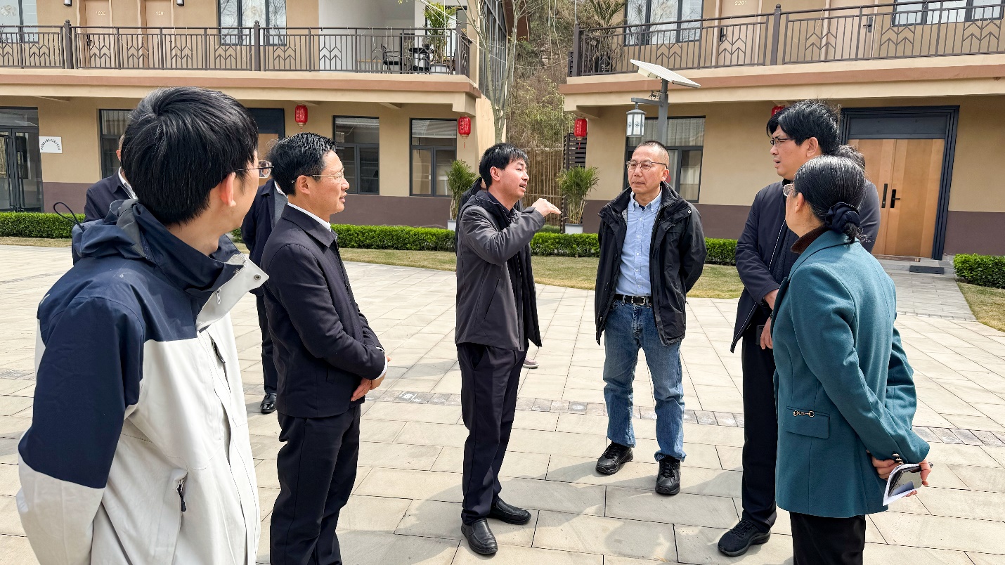接下来,调研团前往南江县文旅示范区光雾合谷康养小镇,调研当地文旅康养产业发展情况。光雾合谷康养小镇地处秦巴山腹地/米仓山南麓,毗邻国家级4A级风景区光雾山。光雾山森林覆盖率超过98.5%,负氧离子含量超过30000个/cm³,年均温度18.2℃,是康养度假、休闲旅游的理想之地。光雾和谷康养小镇是南江县创建光雾山5A级旅游景区的重大文化康养综合项目,也是全市第一座寨文化长廊,建设有旅游商业区、五星级温泉酒店、精品度假酒店、国际生态木屋康养基地及栈道、康养医院、文创中心、文化活动广场、乡镇小学及幼儿园、康养社区、生态湿地公园及景观、森林运动公园等旅游基础配套设施和康养设施,项目总投资70亿元,规划区域9000余亩,总建筑面积近100万平方米。通过现场考察,调研团看到了南江县牢固树立并努力践行“绿水青山就是金山银山”理念,致力于处理好高水平保护和高质量发展之间的关系,努力推动南江县文旅康养产业发展,积极探索生态产品价值实现有效途径,推动乡村振兴,促进当地百姓增收致富的生动实践。