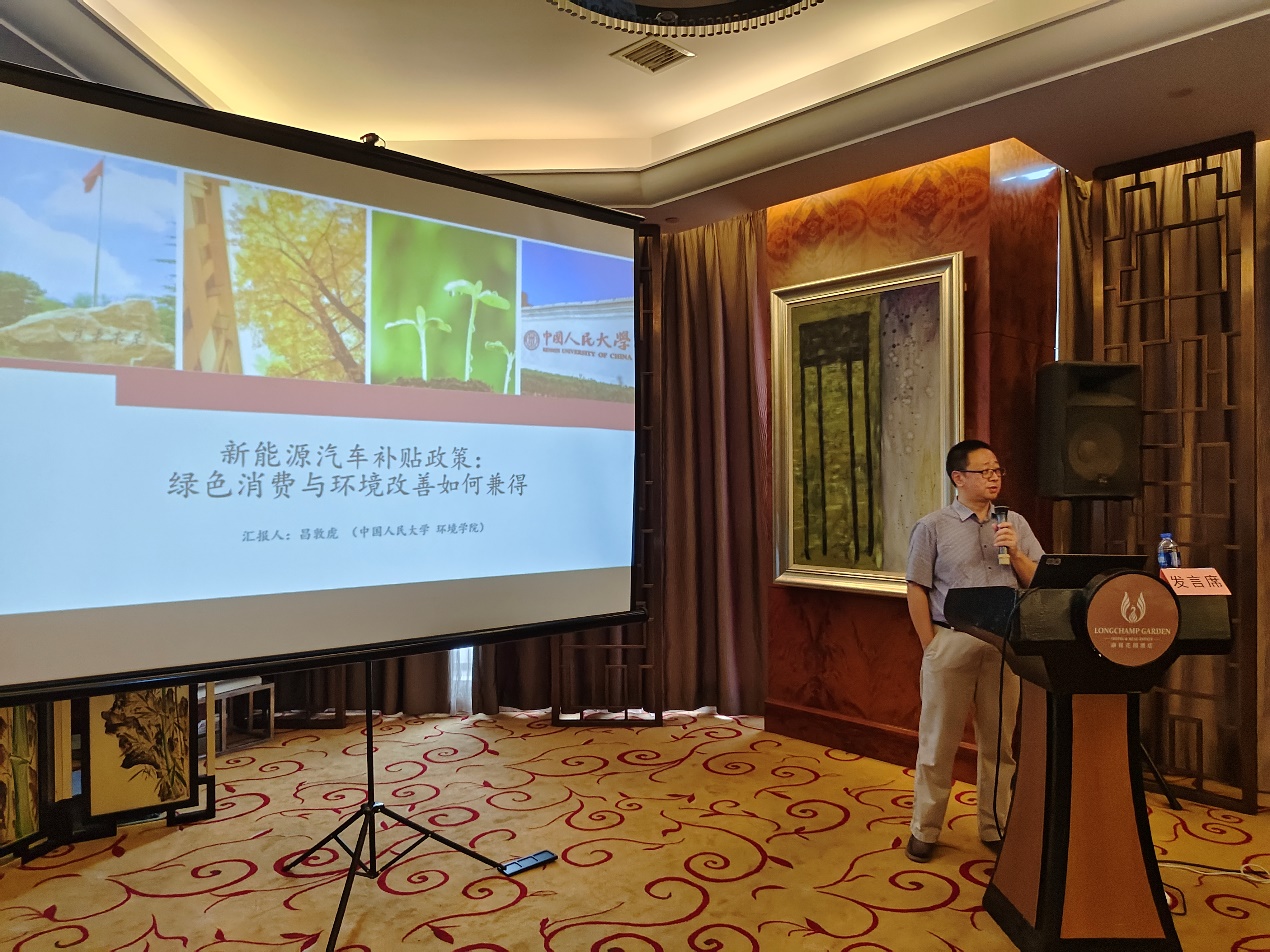 本次会议期间,潮人论坛 昌敦虎副教授受邀参加“面向美丽中国建设的市场经济政策创新”分论坛,并作了题为“新能源汽车补贴政策:绿色消费与环境改善如何兼得?”的学术报告,从内生性动力、市场适应性、结构调整的角度识别和解释了新能源汽车推广补贴政策的环境改善效应与消费驱动效应,指出市场化程度与政府需求刺激强度对补贴政策具有调节作用,并总结出应合理设计补贴政策的目标兼容性和退坡机制等建议。