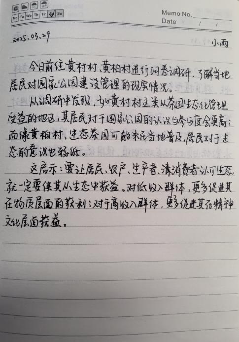 南平市GEP核算工作以“地方需求导向、科学框架支撑”为准则。3月17日至19日,团队在指导老师张波带领下,专题研学生态价值核算的数字化工具,聚焦程序工具、数据代替等实操难点;指导老师马本于20日至21日主持理论辨析会,梳理GEP与生态补偿、绩效考核的政策衔接逻辑。24日,团队与南平市发改委郑科长深入座谈,直面基层数据“堵点”——乡镇层级数据获取困难,需依赖“平替数据”;生态补偿、绩效考核等应用场景需进一步明确。