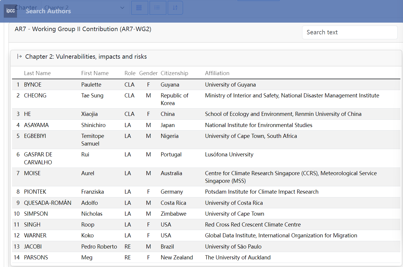 IPCC AR7完整作者名单见://apps.ipcc.ch/report/authors/