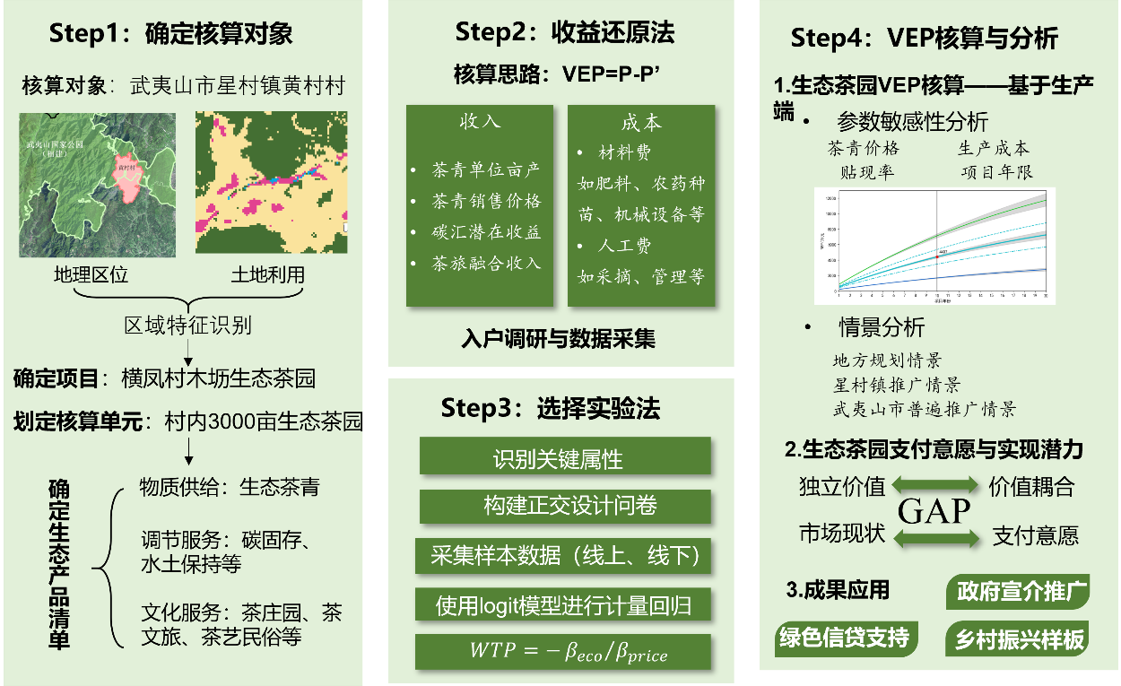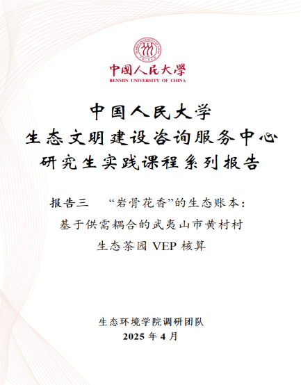 报告三《“岩骨花香”的生态账本:基于供需耦合的武夷山市黄村村生态茶园VEP核算》以星村镇黄村村3000亩生态茶园为样本,首创“生产端收益还原+消费端选择实验”双核模型,构建起从茶园到茶杯的全链条价值识别体系,揭示生态种植模式下茶青生态溢价,验证生态茶园每亩1777元增益,为绿色金融提供定价锚点,为生态农业价值转化提供“人大方案”。