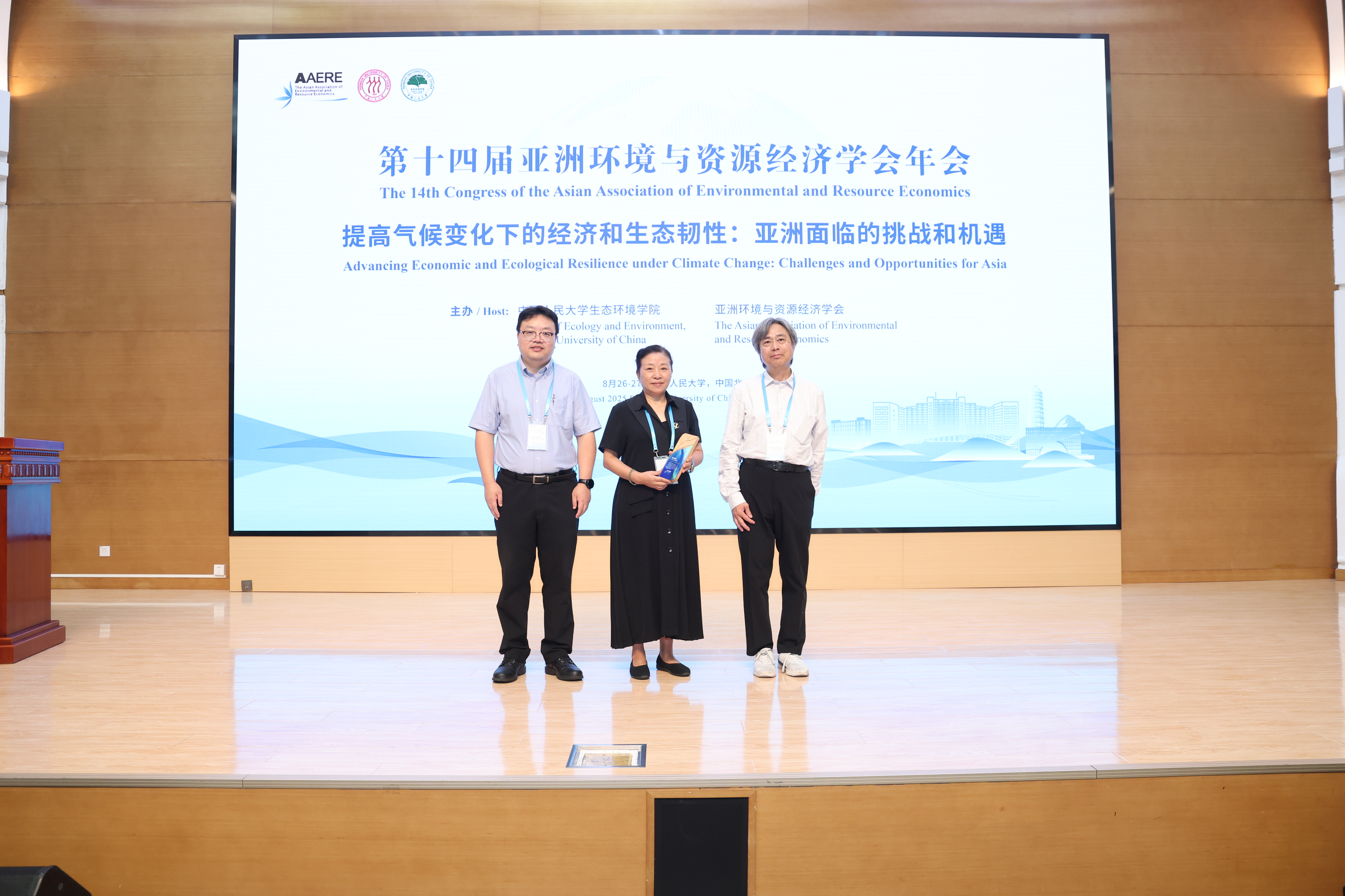 由Kenichi Akao教授和王克教授为AAERE Fellow Award获得者北京大学环境科学与工程学院张世秋教授颁奖。