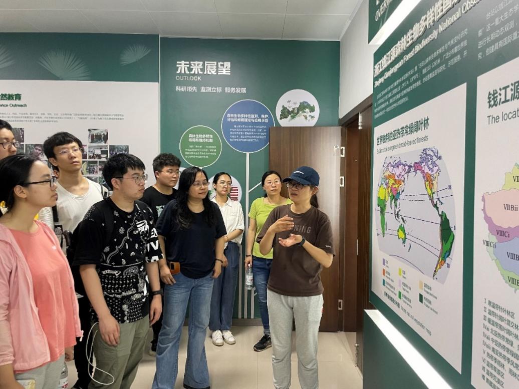 随后,师生们来到钱江源森林生物多样性国家野外科学观测研究站。钱江源森林生物多样性国家野外科学观测研究站工程师为师生详细介绍了中科院在钱江源国家森林公园的研究内容和研究成果,师生们认真聆听、积极互动,通过钱江源站所构建的“天空地”一体化的生物多样性综合监测和研究体系,对“亚热带常绿阔叶林生物多样性形成、维持机制和生态系统功能”这一重大生态学问题有了更加深刻的理解。2022级明德环境“经济学-科学”拔尖人才实验班学生刘志静表示,中科院在钱江源设立的科研监测站专家云集,监测方法科学且新颖,人机配合十分默契,打破了我对野外环境科考“只有艰苦”的刻板印象。