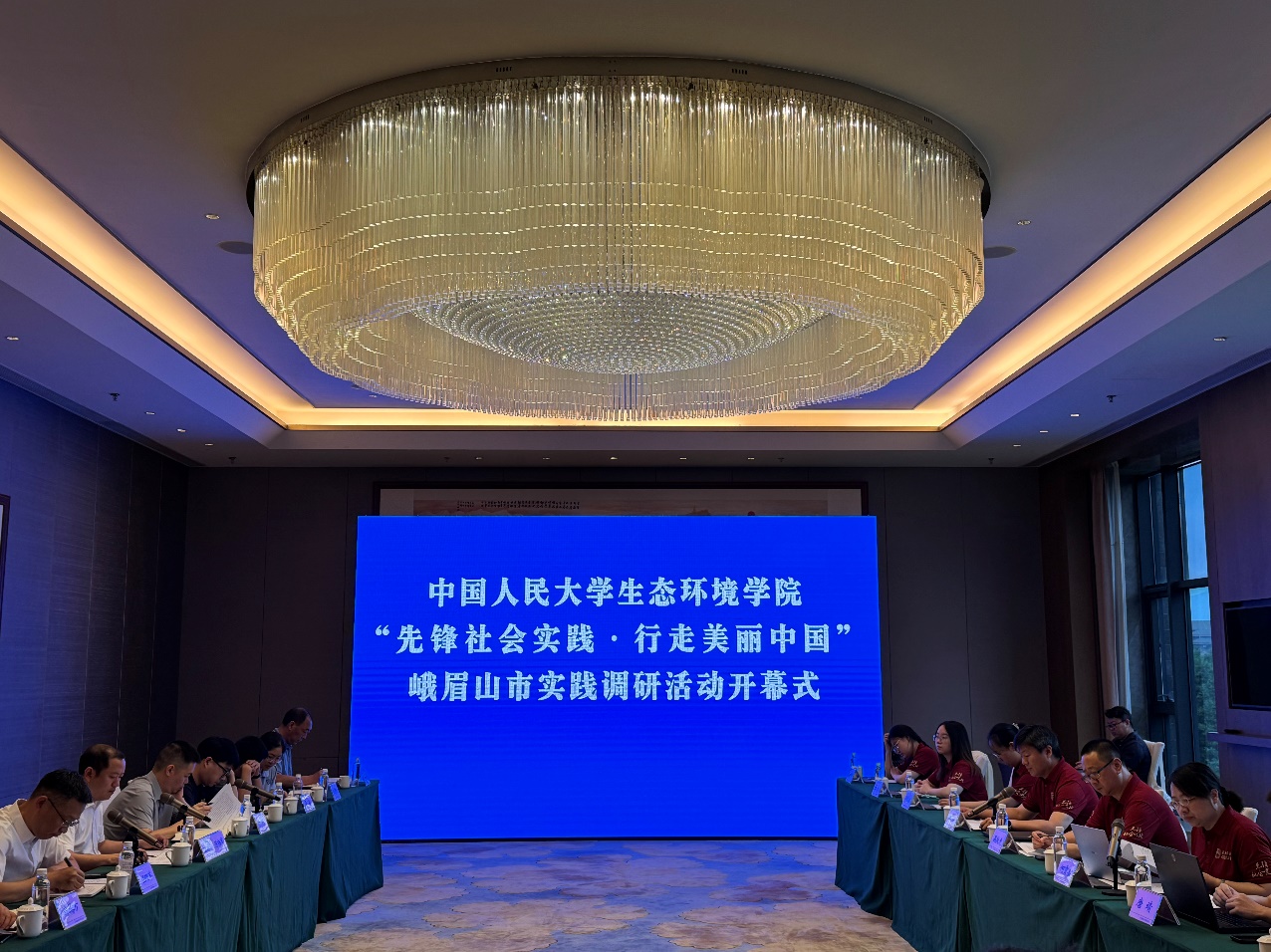 7月22日的实践调研活动开幕式由峨眉山风景名胜区管理委员会副主任陈杨军主持,峨眉山市副市长任理军对调研团队的到来表示欢迎,本次潮人论坛 实践团负责人昌敦虎副院长强调了社会实践在生态文明教育中的重要意义,并表示将以此次合作为契机,推动校地共建,助力区域绿色高质量发展。峨眉山市委组织部、峨眉山市发改局、峨眉山市生态环境局、峨眉山市文体旅游局、峨眉山风景名胜区管理委员会党政办公室、峨眉山风景名胜区管理委员会文旅局、峨眉山世界文化和自然遗产研究院、峨眉山林业所、峨眉山生物资源实验站等相关机构的负责人分别详细介绍了峨眉生物多样性保护、生态环境治理、生态产业发展及碳中和实践的基本情况。