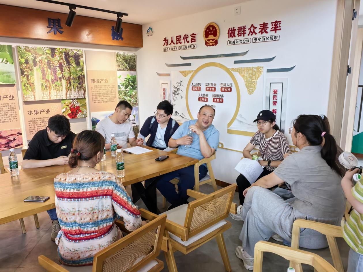 7月24日下午,调研团队先后前往桂花桥镇农业大公园和高桥镇寨子村,调研农旅与茶旅发展情况。桂花桥镇组织委员周燕介绍,作为峨眉山市首个“农业大公园”,该园区以全域统一规划为引领,统筹山水林田资源,总面积达25平方公里,覆盖8个行政村,15公里环线串联起 “识稻药田园、赏稻花渔乡、品茶山果园、游古村水乡”4大功能区及稻药、茶叶、火龙果等13个特色园区,实现了“农区变景区、田园变公园”的转型。访谈中,农户们提到,农业大公园建成后,收入稳步提升,农产品有了更宽广的销路,日常文娱活动愈发丰富,村际基础设施持续完善,生活的幸福感不断增强。在高桥镇寨子村,高桥镇组织委员杨菲介绍,寨子村以“指纹”茶园为特色,打造高山有机茶田,同时深挖灵岩叠翠、遥望金顶的自然景观优势与茶马古道的历史底蕴,推动茶旅融合发展。村民种植的茶叶,一部分供应给竹叶青公司,另一部分在村内加工厂制成手工茶。通过开展采茶炒茶体验、研学活动,寨子村吸引了大量游客,有效拓宽了村民的增收路径。