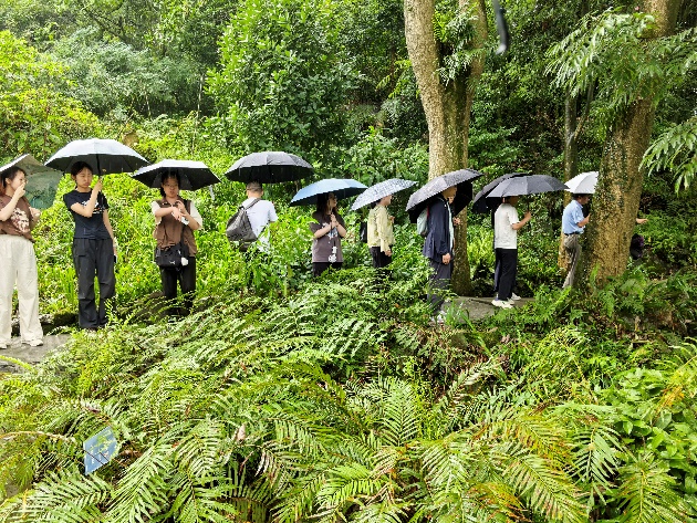 7月25日下午,实践团师生走进峨眉山生物资源实验站,开启了一场近距离探秘生物多样性保护的研学之旅。在峨眉山生物资源实验站副站长方志强的细致讲解中,大家认识了桫椤、金毛狗等国家重点保护蕨类,更了解了植物界“大熊猫”峨眉拟单性木兰,聆听了池塘里仙琴水蛙交替 “弹奏” 的美妙“琴声”。沿着蜿蜒山路深入实验站,师生们了解到这里收集保存着丰富的活体植物,其中包括众多国家重点保护植物、中国特有植物,仅以 “峨眉” 命名的就有上百种。作为四川省第一批科普教育单位,实验站每年接待大量访客,将生物多样性保护理念传递给更多人。这场研学让师生们深刻感悟到:正是科研人员年复一年的坚守与探索,让濒危物种重焕生机,为长江上游生态屏障筑牢根基。这里不仅是拯救濒危植物的“植物王国”,更彰显着保护生物多样性的“乐山智慧”,而每个人都能在此读懂生命的珍贵,成为生态保护的践行者与传播者。