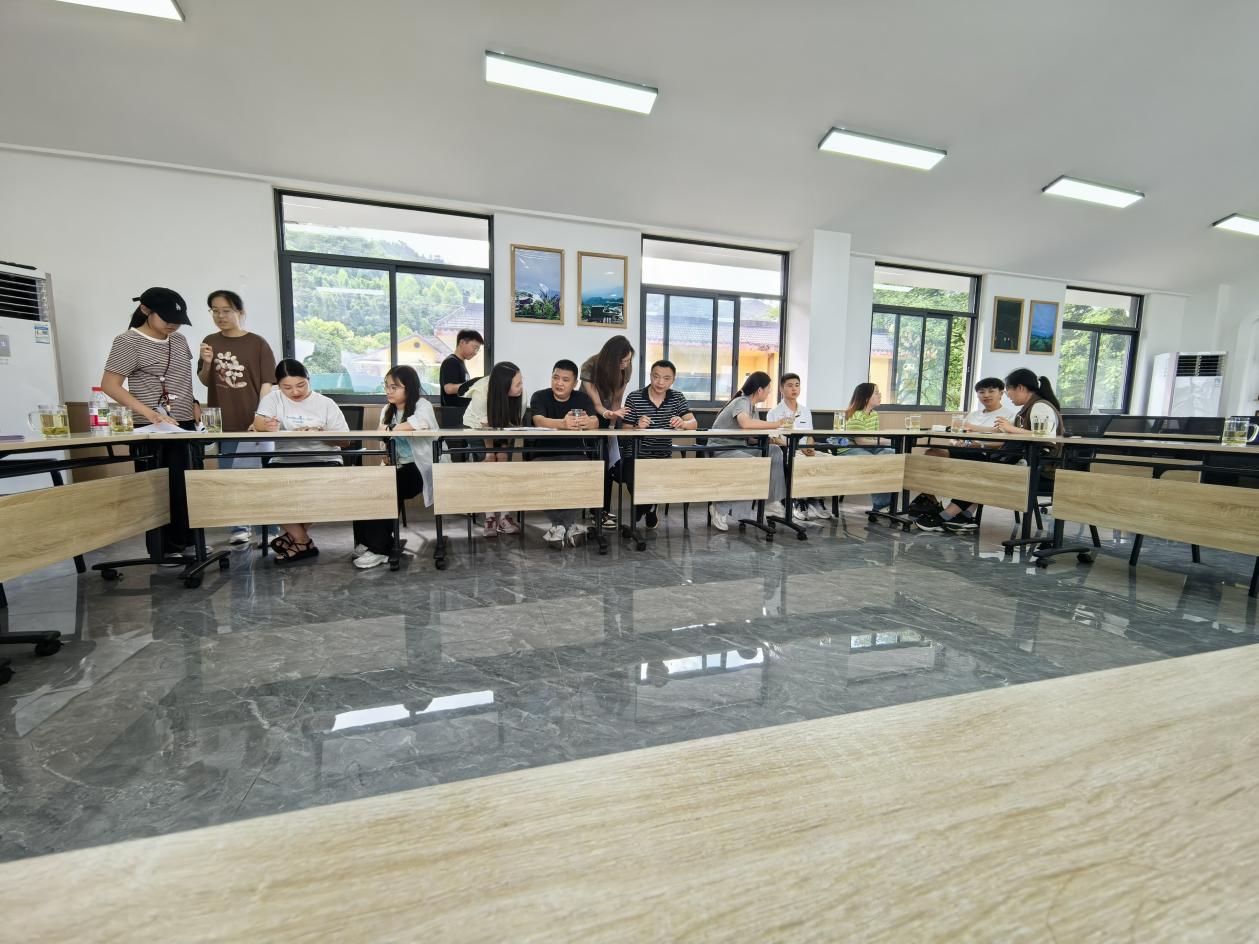 7月23日上午,调研师生团探访峨眉山竹叶青茶叶有限公司,解码其生态茶产业发展路径。该公司扎根峨眉山,以“高山、明前、茶芽”为核心标准,采摘海拔600-1500米的高山茶芽,树立高端绿茶标杆。2018年战略转型后,通过“技术到村、车间到村、物资到村”模式,将技术指导、加工车间延伸至乡村,联动茶企与合作社构建产业共同体,以茶产业升级助力乡村振兴,让茶叶成为带动茶农增收的“绿叶子”。