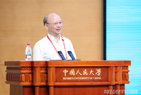 2025年7月20日上午,由中国生态经济学学会副理事长、南京农业大学图书馆馆长、教授郭忠兴和中国生态经济学学会副理事长、中国社会科学院数量经济与技术经济研究所副所长、研究员主持主旨报告,并分别由中国生态经济学学会副理事长、中共重庆市委党校(重庆行政学院)副校(院)长、研究员王胜作题为《关于生态产品价值实现的若干思考》的主旨报告;中国生态经济学学会副理事长、中国社会科学院数量经济与技术经济研究所副所长、研究员张友国作题为《构建生态文明新格局》的主旨报告;中国生态经济学学会海洋生态经济专业委员会主任委员、浙江农林大学生态文明研究院院长、教授沈满洪作题为《两山”理念的理论逻辑及实践验证》的主旨报告;中国生态经济学学会区域生态经济专业委员会主任委员、中国科学院地理科学与资源研究所研究员董锁成作题为《区域生态经济学理论与实践进展》的主旨报告;中国生态经济学学会副理事长、南京农业大学图书馆馆长、教授郭忠兴作题为《集体行动与生态产品价值实现》的主旨报告;中国生态经济学学会副理事长、北京师范大学环境学院教授毛显强作题为《降碳、减污、扩绿、增长协同推进的理论与实践》的主旨报告;中国生态经济学学会生态恢复专业委员会主任委员、中国科学院西北生态环境资源研究院研究员王世金作题为《中国生态恢复研究进展与热点分析》的主旨报告;中国生态经济学学会常务理事、生态环境部环境规划院生态环境管理与政策研究所所长、研究员董战峰作题为《国家生态补偿制度创新与实现路径》的主旨报告。