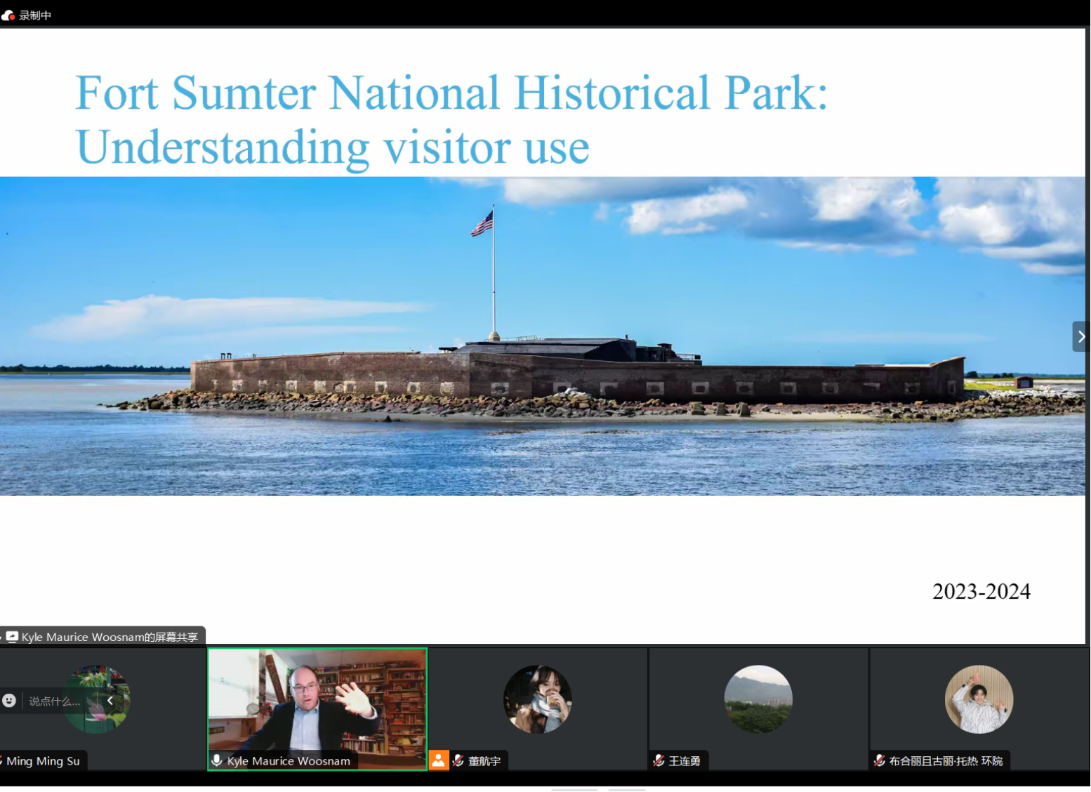 接下来,Woosnam教授细致分享了近期和美国公园管理局合作的两项研究。第一项研究聚焦Fort Sumter National Historical Park (South Carolina)(萨姆特堡国家历史公园),分析国家公园的游客使用模式。该研究通过游客GPS数据收集的研究方法,通过地理空间数据和分区研究的方式,对比不同类型游客在不同季节及天气条件下在公园内的游览路线,时空行为模式,游览体验评价,并识别游客行为模式的主要影响因素,并提出补充教育和讲解资源对于国家公园游客管理的重要性。研究结果为完善国家公园游客管理,提升游客体验,解决潜在拥挤问题提供了实践指导。