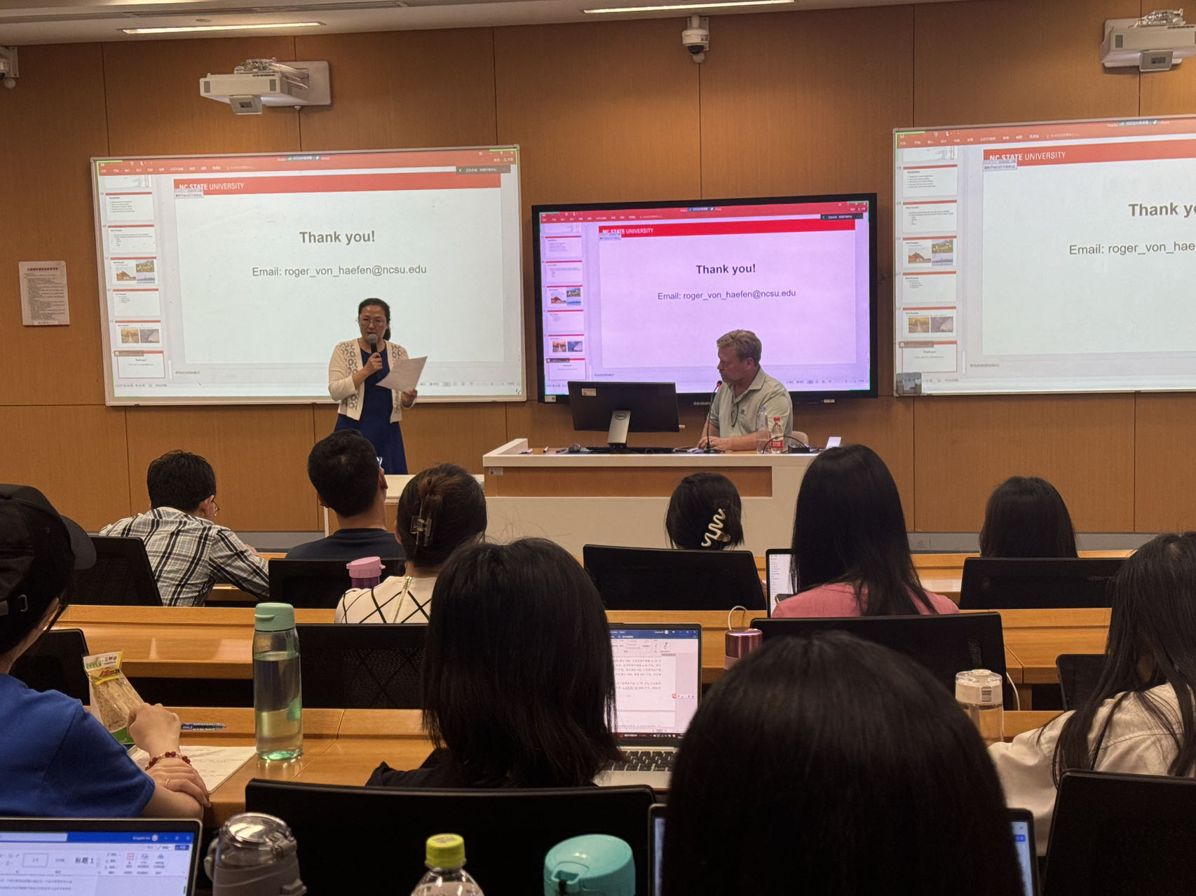潮人论坛 院长庞军教授首先致辞,代表学院对Roger H. von Haefen教授为潮人论坛 师生作学术报告表示诚挚感谢,并对参会师生在交流学习过程中能够有所收获提出了殷切期望。会议由潮人论坛 龚亚珍教授主持。