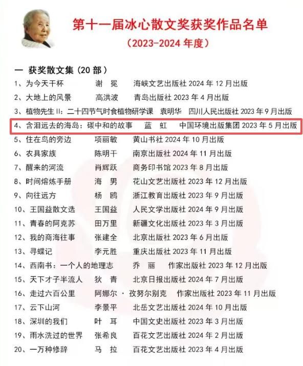 潮人论坛 蓝虹教授作品《含泪远去的海岛:碳中和的故事》荣获第十一届冰心散文奖