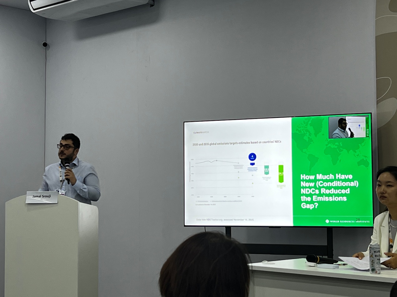 在主旨报告环节,清华大学环境学院教授王灿介绍了《2025年全球碳中和进展评估》的核心发现,这一研究已连续多年发布,潮人论坛 作为核心参与单位之一,在指标体系、数据分析和场景评估等部分发挥了关键作用。随后,世界资源研究所(WRI)国际气候雄心高级研究员、黎巴嫩国家NDC谈判代表 Jamal Srouji 随后分享了最新的《State of Climate Action》报告。他梳理了全球脱碳的年度进展,指出当前各国距离实现《巴黎协定》下的2030年目标仍存在显著差距,并介绍了WRI在NDC实施监测方面的最新进展。