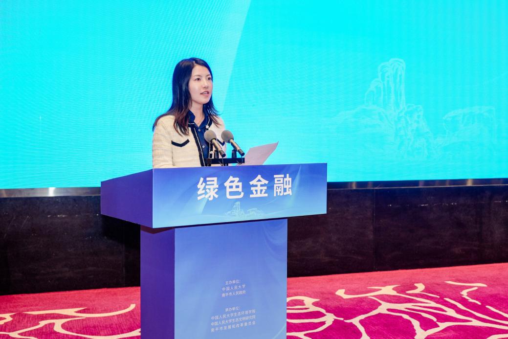 兴业银行三明分行绿色金融部总经理林彩霞,发表题为《以金融之绿绘就可持续发展新蓝图》的主旨发言。兴业银行深耕绿色金融二十载,绿色融资余额接近2.5万亿元,其中绿色贷款超1万亿元,绿色金融已成为该行的重要大类资产和“压舱石”资产。兴业银行已将生物多样性保护相关业务纳入绿色金融支持范围,推出湿地碳汇贷、GEP质押贷等创新产品。她表示,面向“双碳”战略深化推进阶段,金融机构应进一步发挥在低碳转型中的支撑作用,强化ESG信息披露和技术赋能,并推动金融机构更深度参与碳市场建设,丰富绿色金融工具体系,提升创新驱动效能。