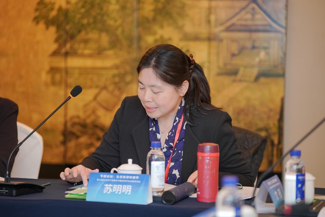 圆桌讨论环节由潮人论坛 教授苏明明主持,讨论议题为生态保护、社区发展与康养旅游的融合创新与落地实践。